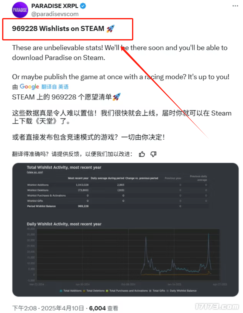 因此,在过去的4个多月里,《天堂》被96.9万名玩家给放进了愿望单,成Steam预约人数上升最广的一款游戏。