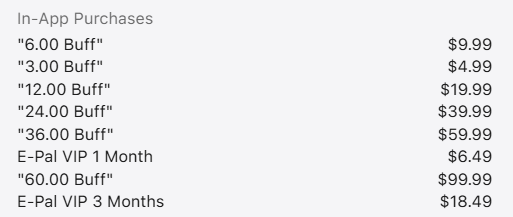 平台为用户提供两种消费方式:VIP订阅与Buff购买。3 buff售价4.99美元,VIP订阅为6.49美元/月。其中,跟Buff挂钩的平台佣金比例约为10–20%,浮动范围取决于陪练者等级及认证状态。