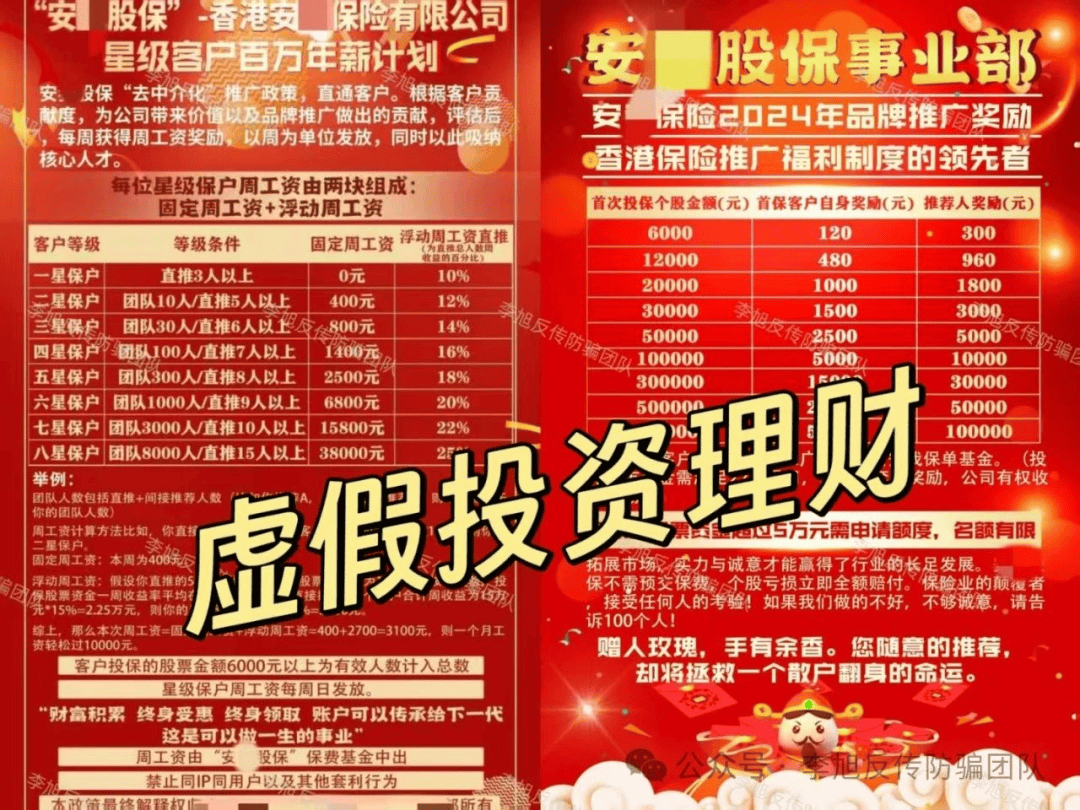 根据投保金额向参与者和推荐人发放奖励,根据推荐人数或团队人数设立8个星级,向周工资和最低10%浮动直推周工资。其模式符合传销特征,涉嫌非法集资。